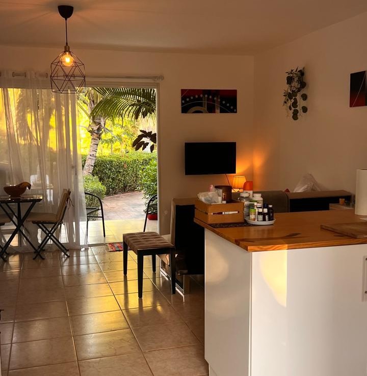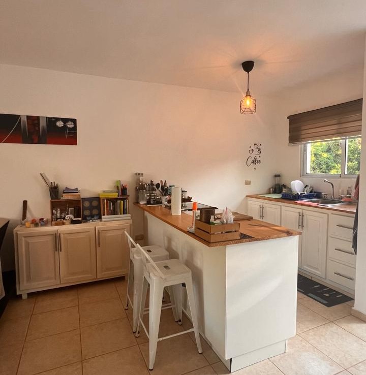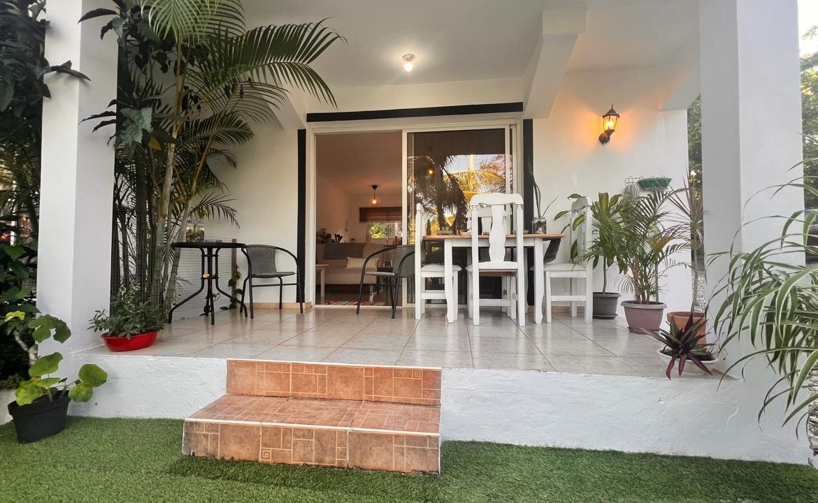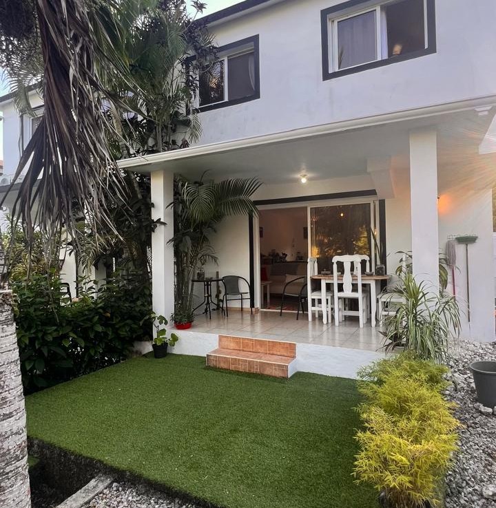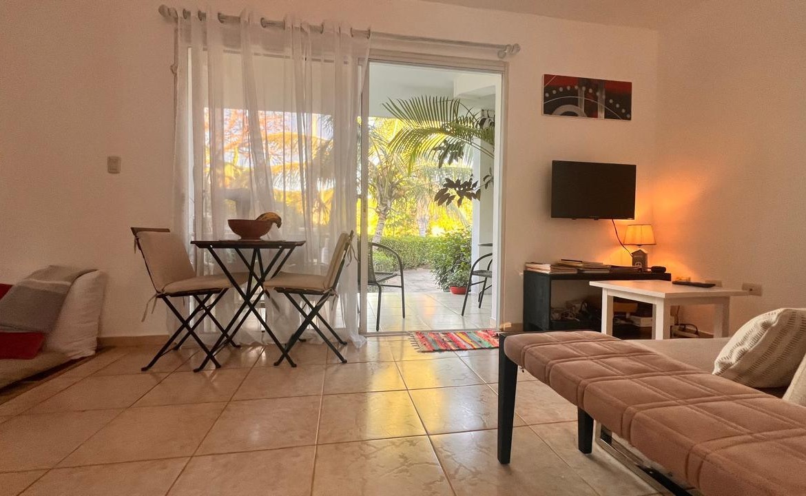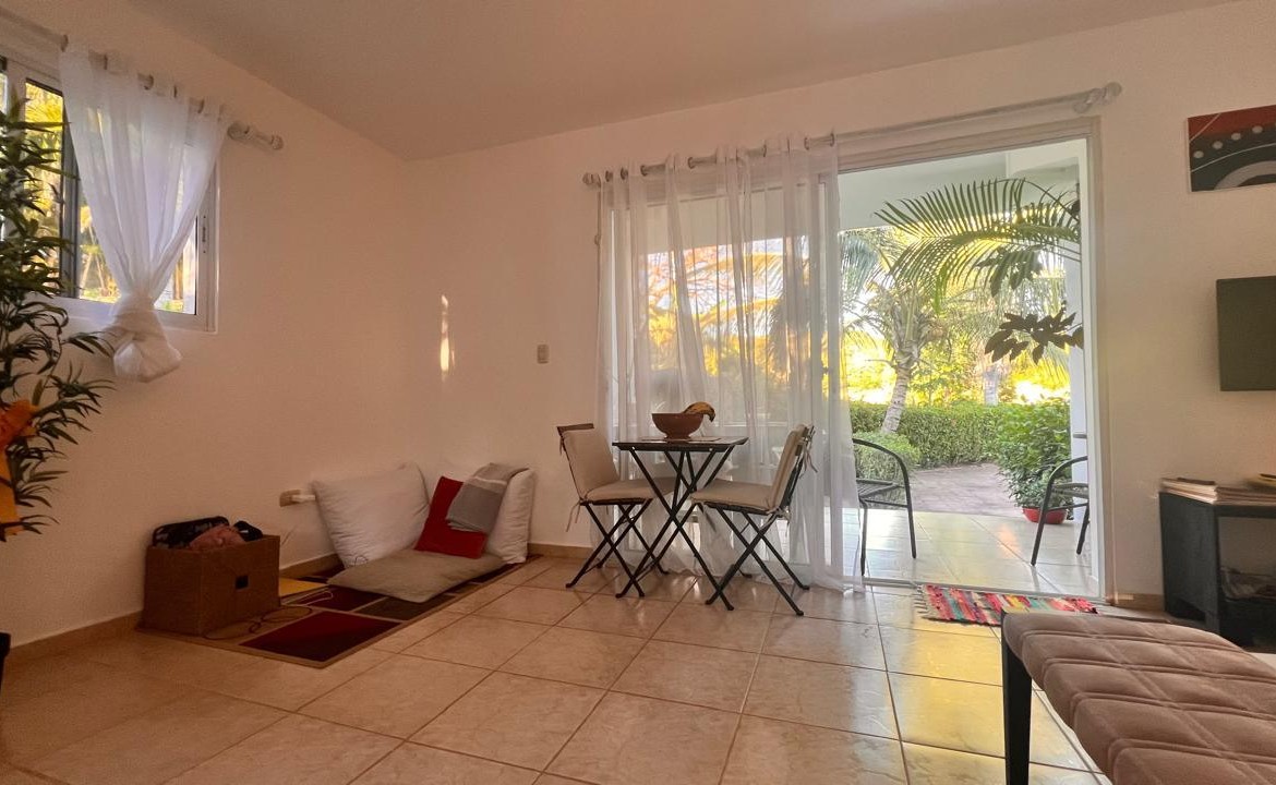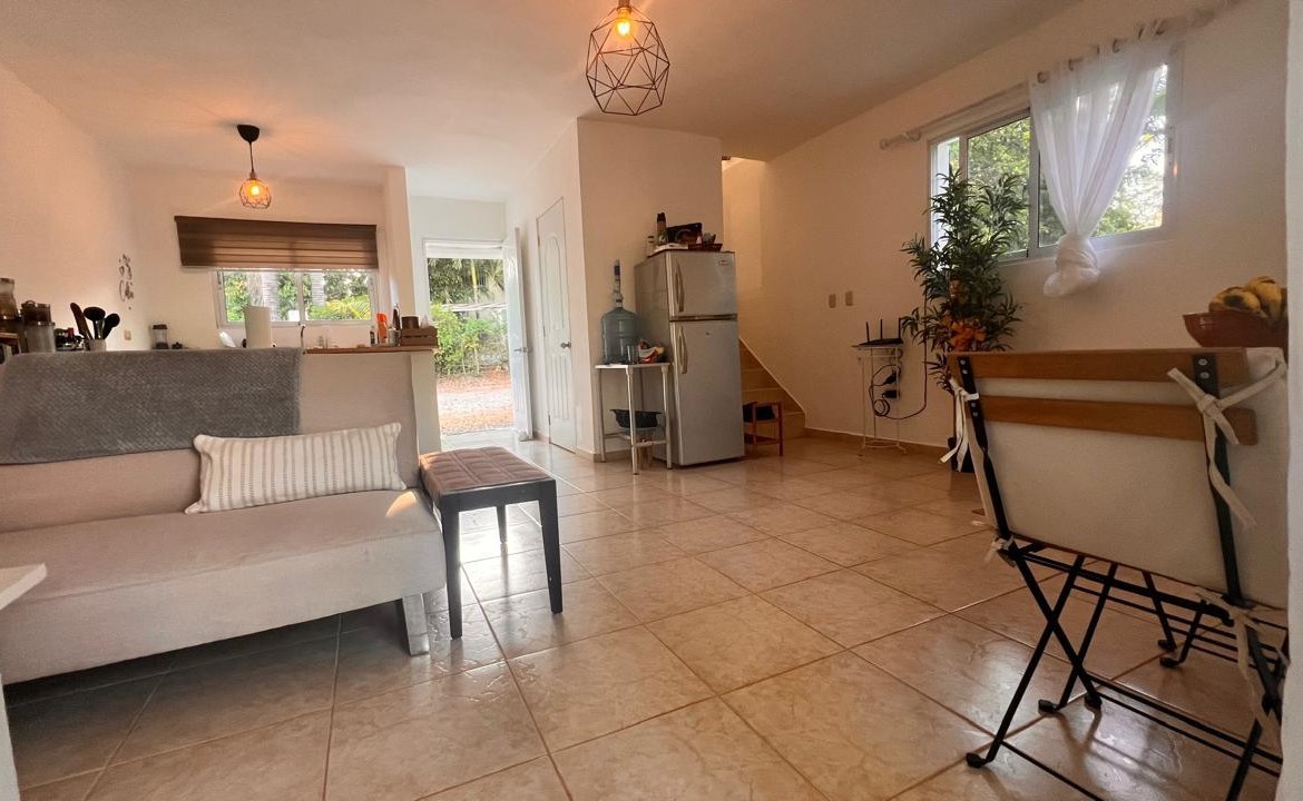 1377 Step into island living with this immaculately presented 2-bed, 1.5-bath townhouse tucked inside a quiet gated community near Río San Juan. The open-plan ground floor offers a light-filled living/dining area that flows onto a covered terrace overlooking the communal garden and pool — ideal for morning coffee or evening barbecues. The functional kitchen has ample storage and room for a breakfast table.