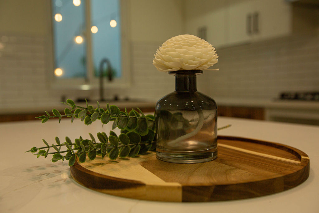Modern kitchen with waterfall quartz island