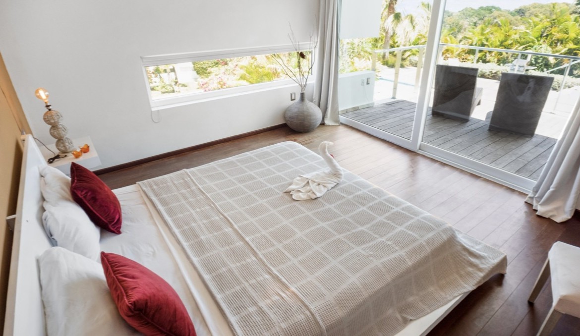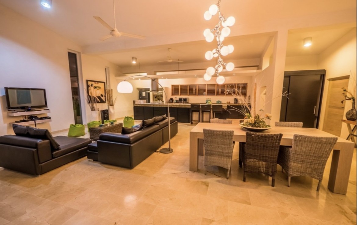 This spacious four-bedroom villa is designed to comfortably accommodate larger groups, offering both style and functionality for a relaxing getaway. The interior features an open-concept living area with plenty of space to lounge, a dedicated dining section for shared meals, and a fully equipped kitchen with everything needed for effortless cooking. Several of the bedrooms enjoy direct access to private outdoor areas, while others are thoughtfully positioned to provide extra privacy—ideal for families or groups traveling together.