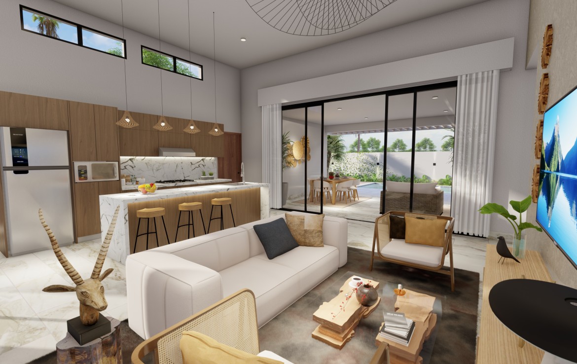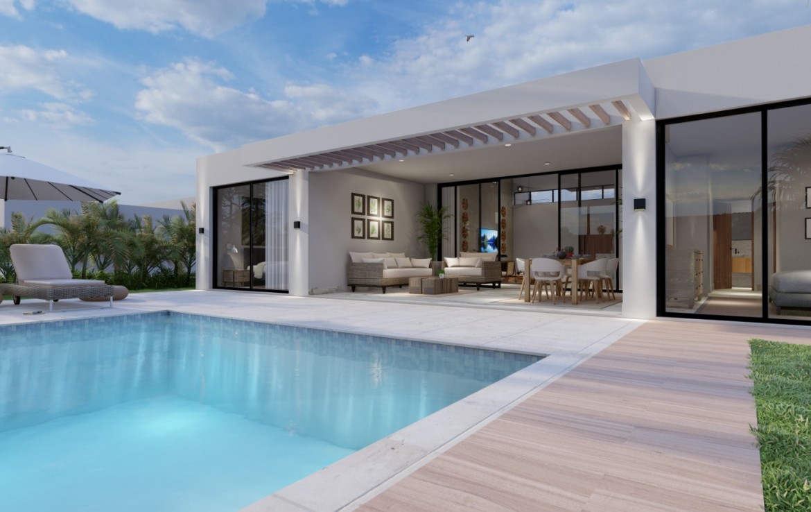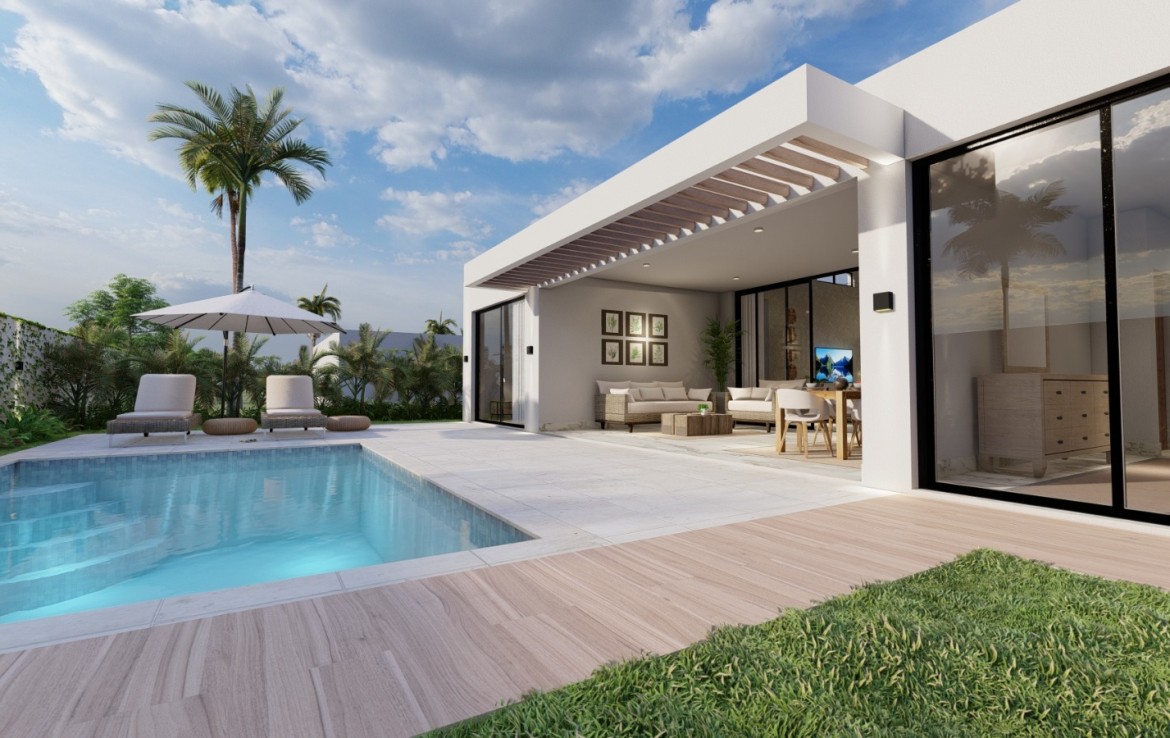 1829.86 Discover this exclusive Pre Construction villa nestled in a secure oceanfront gated community. This remarkable property, priced attractively, offers 3 bedrooms, 2 bathrooms, spanning 170 sq m in construction and occupying a generous 432 sq m lot.