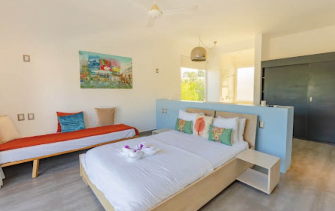 2583 Set in a prime location near Sosúa, this beautifully constructed 2017 villa blends modern comfort with Caribbean elegance, offering 2,583 square feet of thoughtfully designed living space on a generous 10,763 square foot lot. The home features three spacious bedrooms and three full bathrooms, with two bedrooms conveniently located on the main level and a private third bedroom downstairs—ideal for guests or added privacy. Each room is equipped with air conditioning, ensuring year-round comfort. The fully equipped kitchen includes all essential appliances, making it perfect for both everyday living and entertaining.