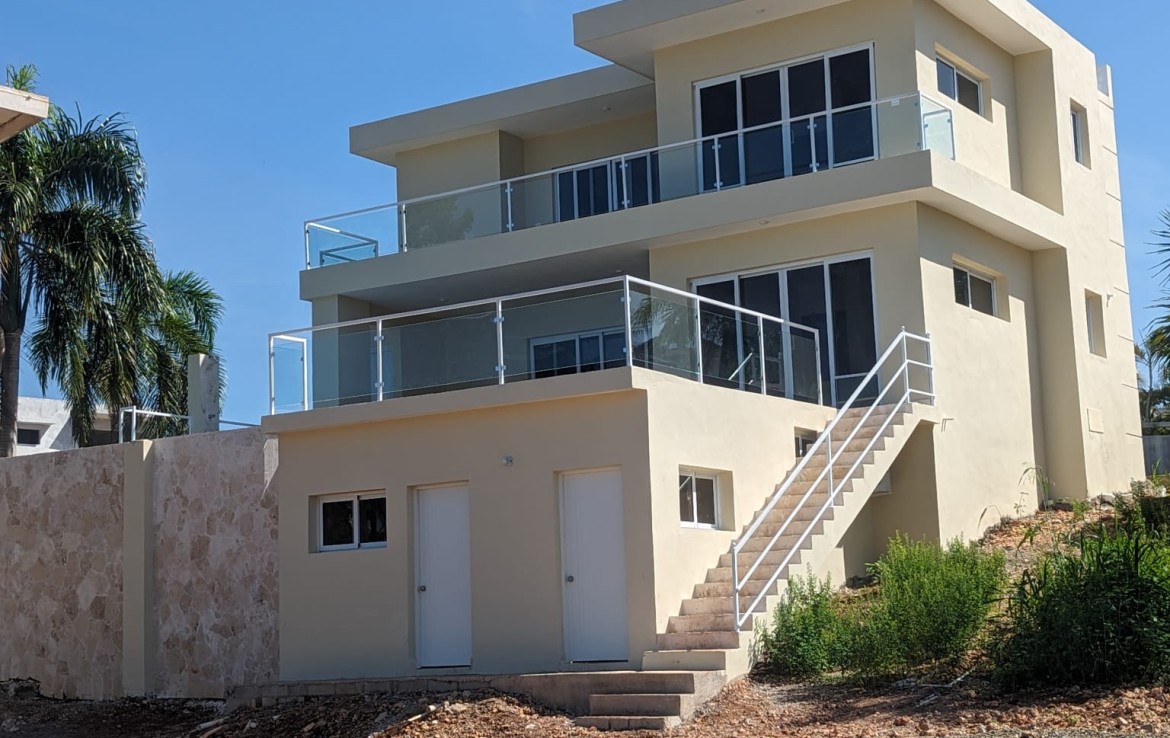2076 Designed with luxury and comfort in mind, our brand new 2 storey Villa with Sweeping Ocean Views is perfect for anyone seeking the ultimate dream home. Enjoy the stunning ocean views from the comfort of your own home with 4 bedrooms, 3.5 baths, with a self-contained in-law suite. Enjoy the ocean breeze on one of the two outside decks, an outside bar and a sparkling pool. The villa comes with granite countertops and stainless steel appliances, as well as nicely furnished rooms. Laundry room, parking for 2 vehicles and a beautifully landscaped double lot to complete the package. With the double lot you have the option to build a second home for extended family or an investment property. Conveniently situated in a quiet gated community with low maintenance fees. This villa provides the ultimate Caribbean vacation or permanent residence home to enjoy with family and friends. Don’t miss your chance to live in paradise!