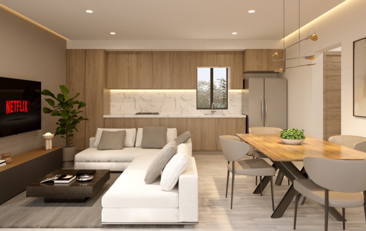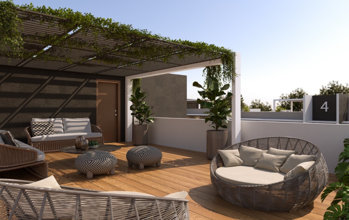 1 This modern and exclusive penthouse pre-construction apartment for sale in Sosúa features 1,184.03 sq ft of interior living space, complemented by a private terrace of equal size, effectively doubling the usable area and creating an exceptional indoor–outdoor living experience. Strategically located within walking distance to Sosúa downtown, beaches, supermarkets, restaurants, and essential services, this penthouse offers a rare combination of space, privacy, and prime location.