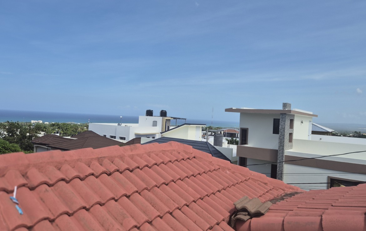 Discover this beautifully designed 3-bedroom, 2.5-bathroom villa located just 1.2 km (4 minutes) from the city center of Puerto Plata. This exceptional property blends Caribbean charm with contemporary comfort, offering 360-degree panoramic views of the ocean and mountains from its private rooftop terrace.