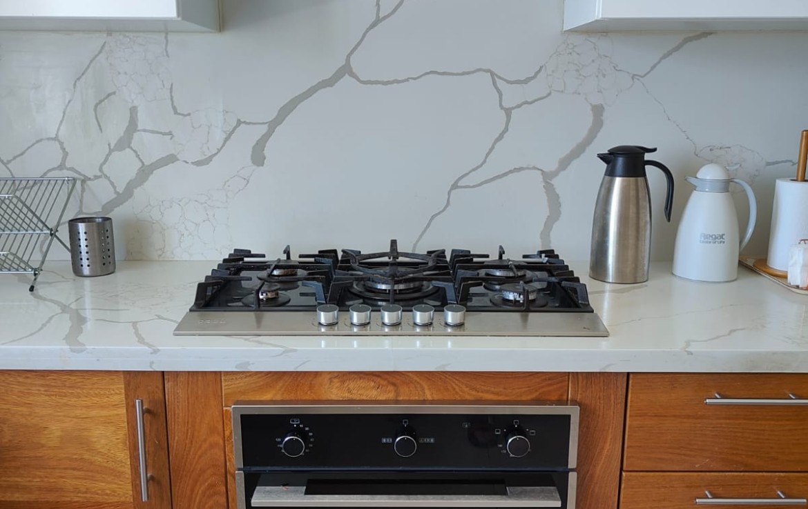 There are 3 bedrooms, all with their own air conditioner, main suite has its own bathroom and walking closet. There are a total of 2 1/2 bathrooms. There is also a separate laundry room and service room. The apartment is very spacious with open style living room dining room and kitchen. The kitchen is equipped with range and built-in oven, 3 door fridge and extractor.