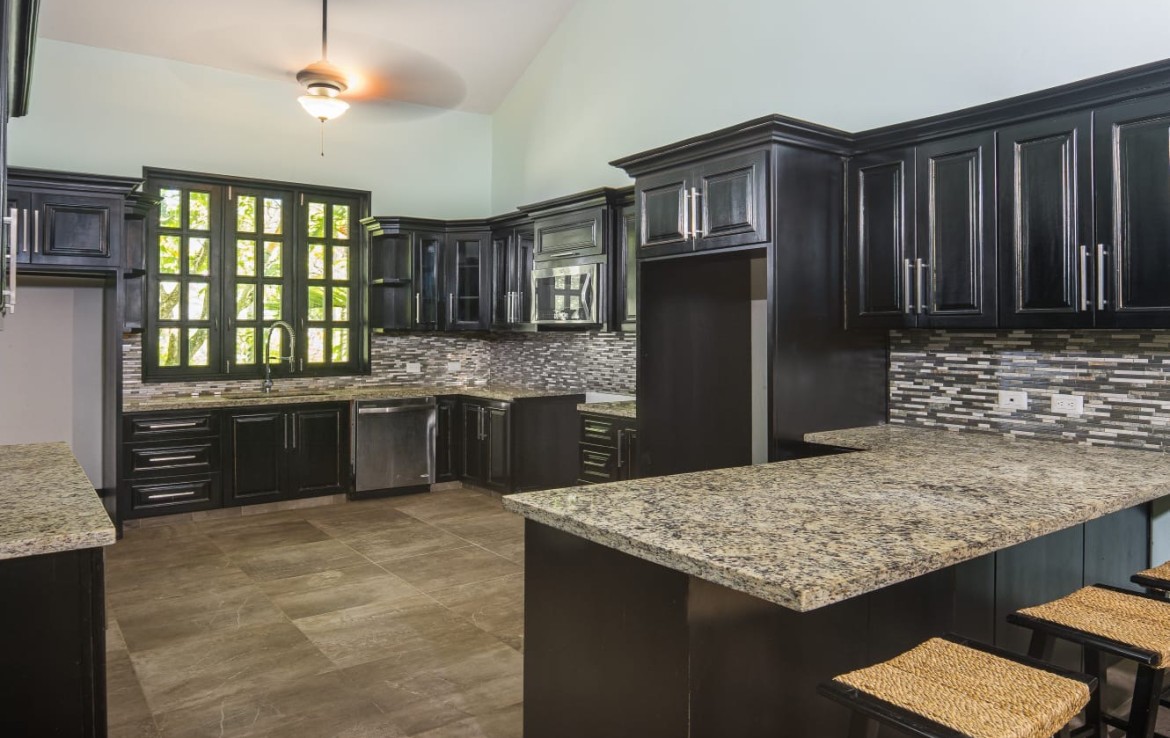 • 2 Gourmet Kitchens with granite countertops & custom Caoba cabinetry