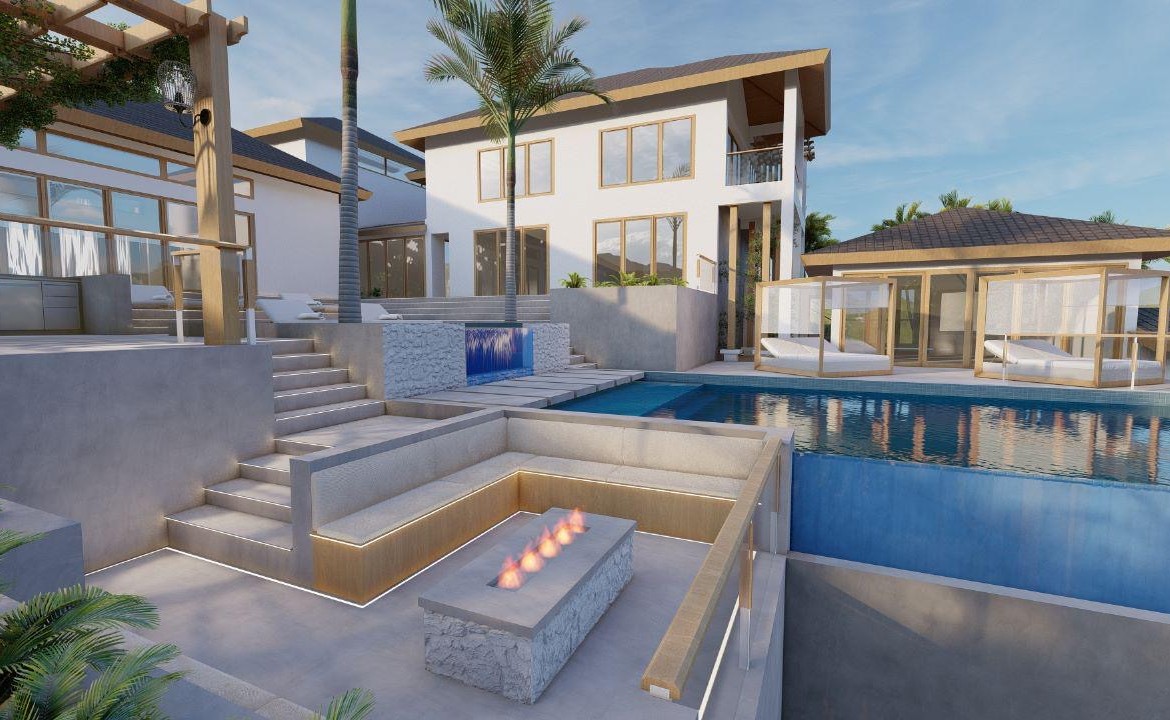 The owner has architectural plans and professional renderings for a possible villa development, allowing buyers to move forward quickly with construction or customize the design to their own vision.