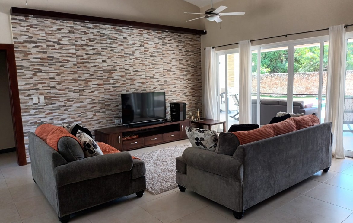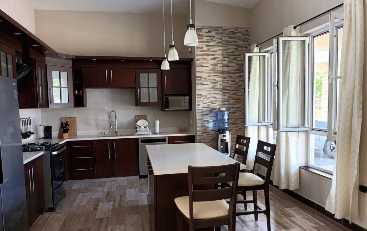 3132 Ideally positioned between Sosúa and Cabarete, set within a secure gated community on the North Coast of the Dominican Republic, the property features a thoughtfully designed large 3-bedroom, 2-bathroom main residence complemented by a separate 1-bedroom, 1-bathroom guest house—ideal for visiting family, or a private home office. Built in 2018 and meticulously maintained, this home is move-in ready and perfectly suited for full-time living, vacation use, or retirement.